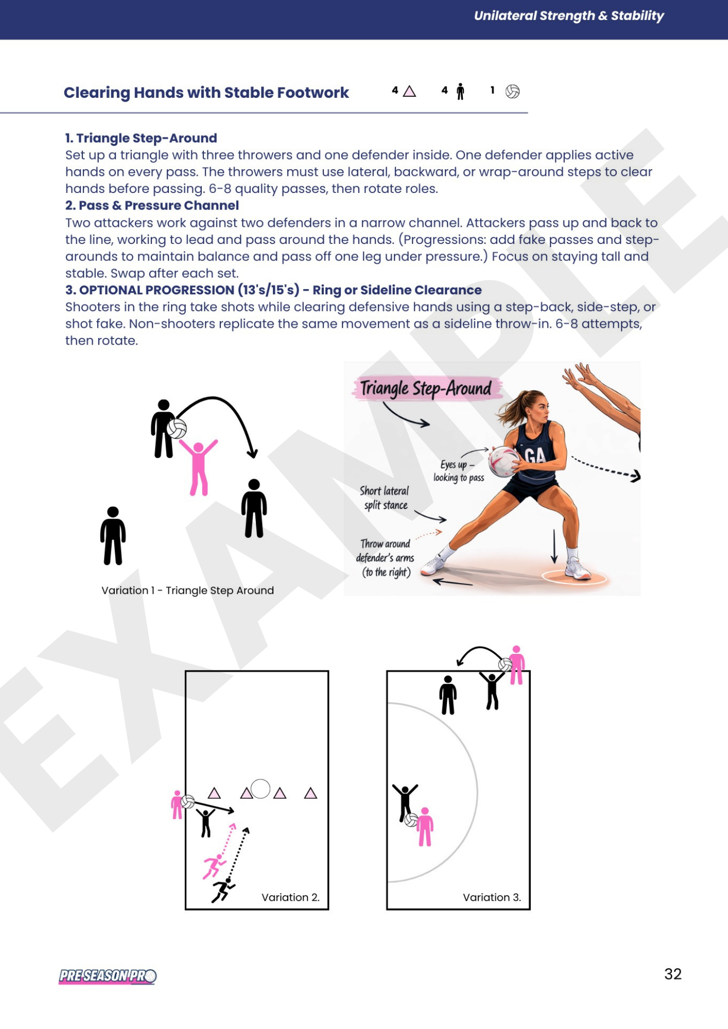 Short, sharp efforts that mirror how netball is actually played - not long, dull fitness runs.On-court drills with clear progressions